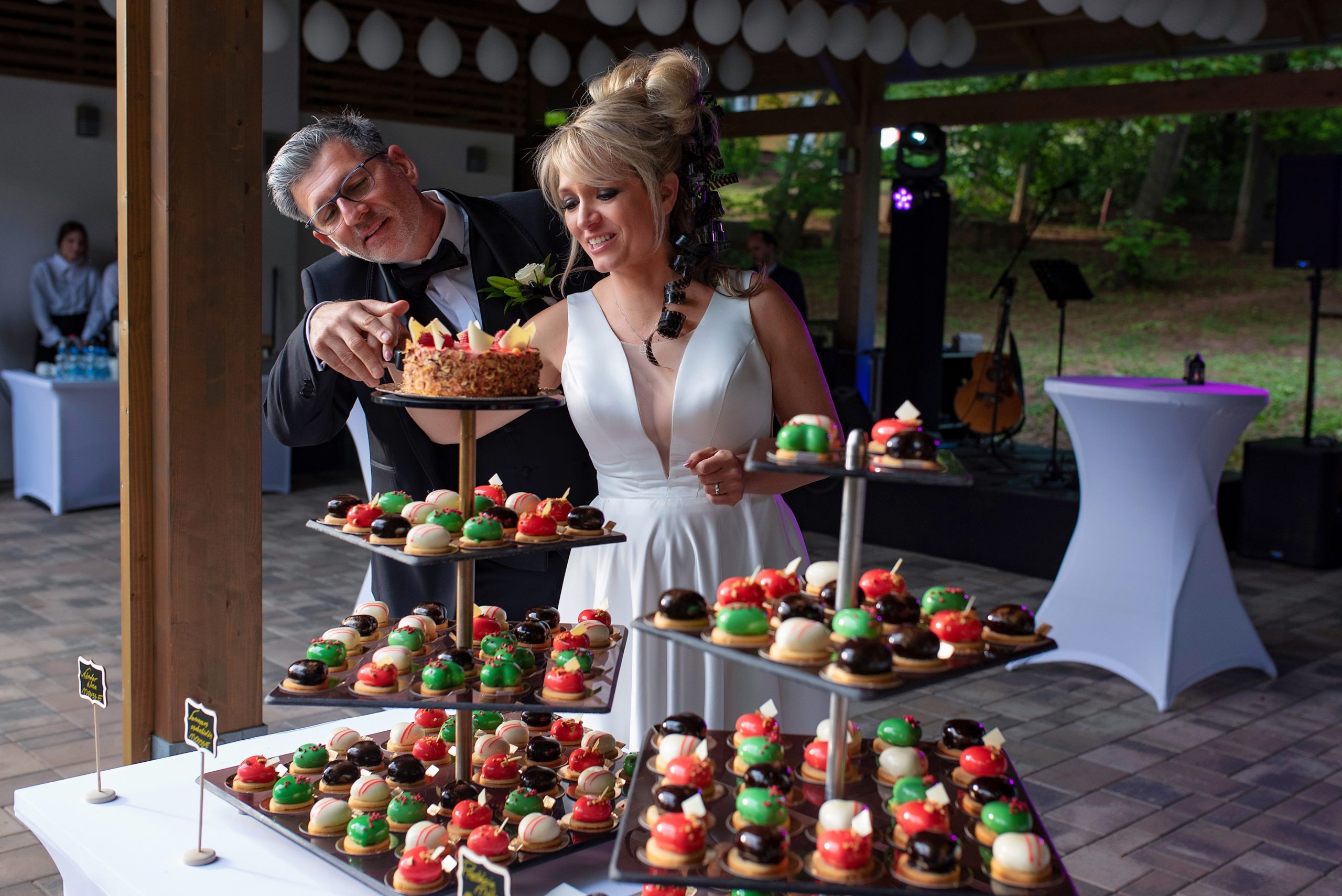 A megható, romantikus szertartást aztán estig tartó „Haccacáré” követte, amelyen a felnőttek és a gyerekek is kedvükre szórakozhattak. A vendégek boldogságához az is hozzájárult, hogy a felszolgálásban a Premier Kultcafé, Robi alapítványi kávézójának fogyatékossággal élő dolgozói vettek részt. Míg a különleges bisztrófogásokról a Sonkamester, a Bio-Goods és a Steak Trezor gondoskodott, addig a talpalávalót ismert zenészek, sztárfellépők szolgáltatták. „A gyerekeket animátorok szórakoztatták, és két óvónő foglalkozott velük a gyereksátorban, míg a felnőttek jó hangulatáért és a buliért Molnár Dani, Bebe, valamint Korda György és Balázs Klári felelt. Mondanom sem kell, mindannyian hatalmas bulit csaptak, egytől egyig mindenki remekül szórakozott. Olyan volt ez a nap, mint amilyennek megálmodtuk. És még az időjárás is kegyes volt hozzánk – sóhajt fel megkönnyebbülve Robi. – Tökéletes volt. Pont, mint Barbara.