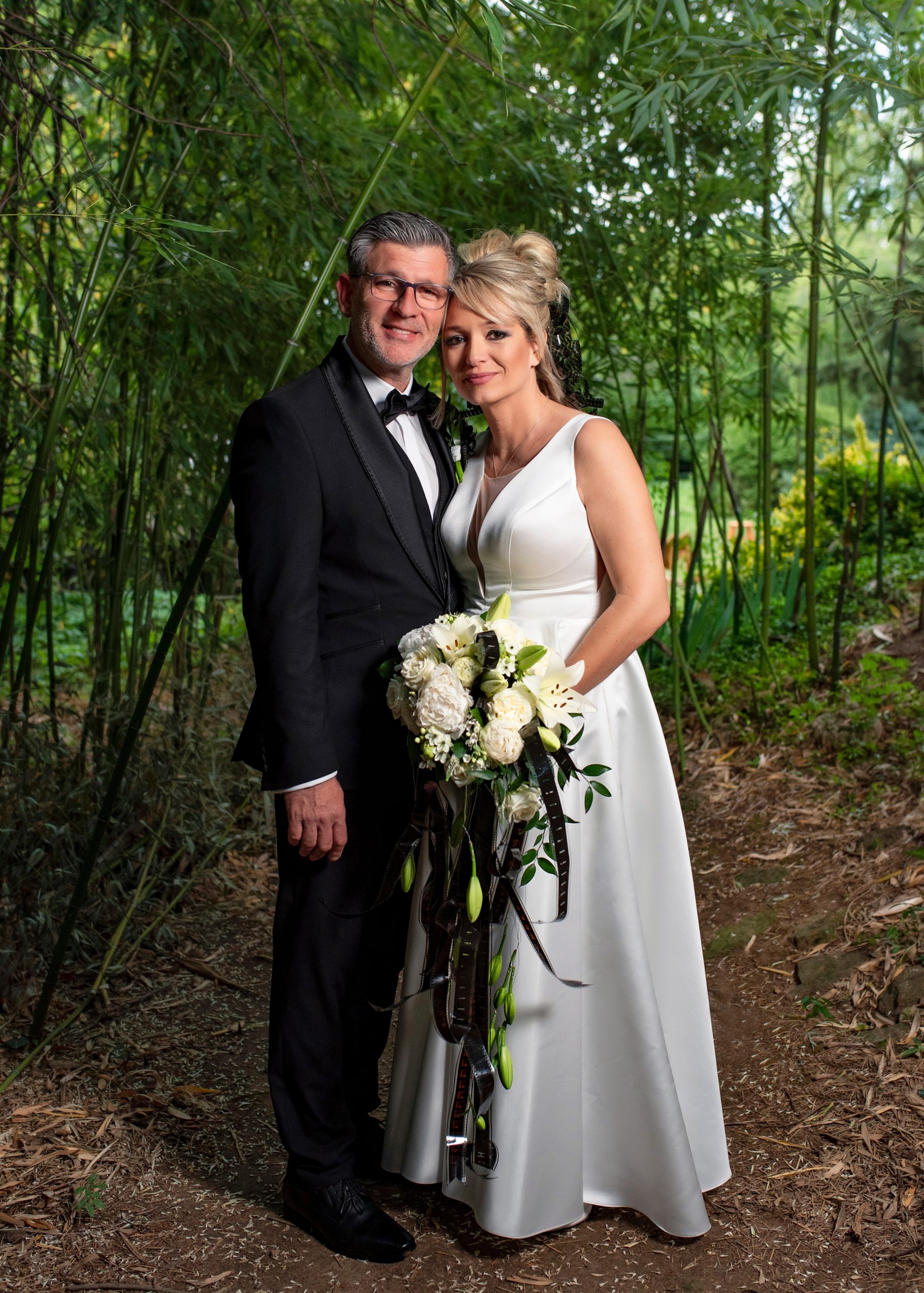 „Két dolog volt biztos az esküvőn: a férj és a filmszalag a hajamban. Hajas Laci készítette ezt a csodát, bár nagyon meglepődött, amikor megjelentem a sok száz méter 16 mm-es filmmel, de azonnal kitalálta, hogy ezt ő bizony besüti, pont, mint az igazi hajat. A saját főiskolai filmjeim kivágott jeleneteit viseltem a kontyomban, ami annyira egyedi és különleges volt, hogy az esküvői ruhát is ehhez mérten kellett kiválasztanom. Egy egyszerű, letisztult ruha mellett tettem le a voksomat. Még az esküvői csokor is filmszalaggal volt tele, amit az Endorphine Flowers álmodott meg nekem. És a film pereg tovább…”