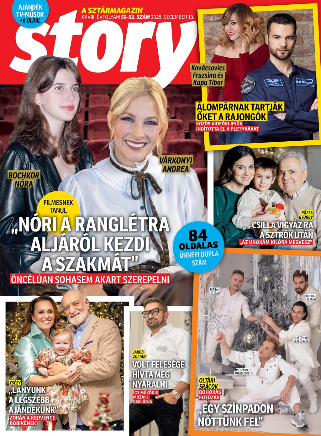 Néhány napja a teljes magyar bulvársajtót bejárta az a fotó, amin Várkonyi Andrea és lánya, Bochkor Nóra együtt jelent meg a Legénybúcsú című mozifilm premierjén. Anyát és lányát hiába ismeri az egész ország, tudatosan törekedtek arra, hogy a reflektorfény sokkal inkább a film alkotóira kerüljön, mint rájuk, ezért a vörös szőnyegre sem léptek fel. Pedig minden okuk megvolt az ünneplésre, hiszen Nóri először tűnt fel a filmvásznon néhány képkocka erejéig. Várkonyi Andrea a Story ünnepi számában elárulta, számára az a fontos, hogy a lánya olyan dolgokkal foglalkozzon, amikben ki tud teljesedni. „Ha az az álma, hogy filmezéssel foglalkozzon, akár a kamera előtt, akár mögött, én támogatom ebben” – mondta Várkonyi Andrea.