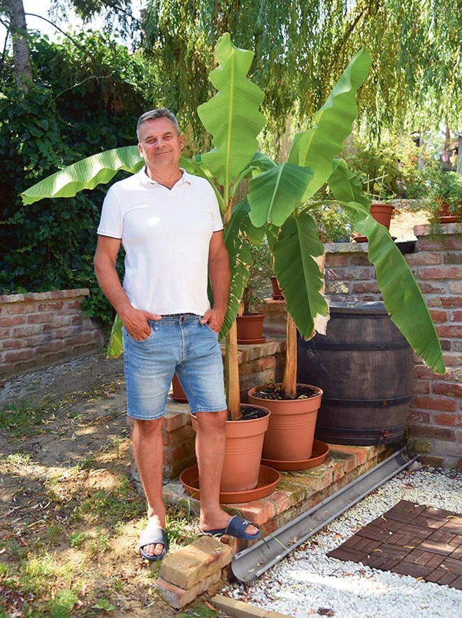 A színész alig várja, hogy banánfái megerősödjenek annyira, hogy kiültethesse őket a cserepekből.