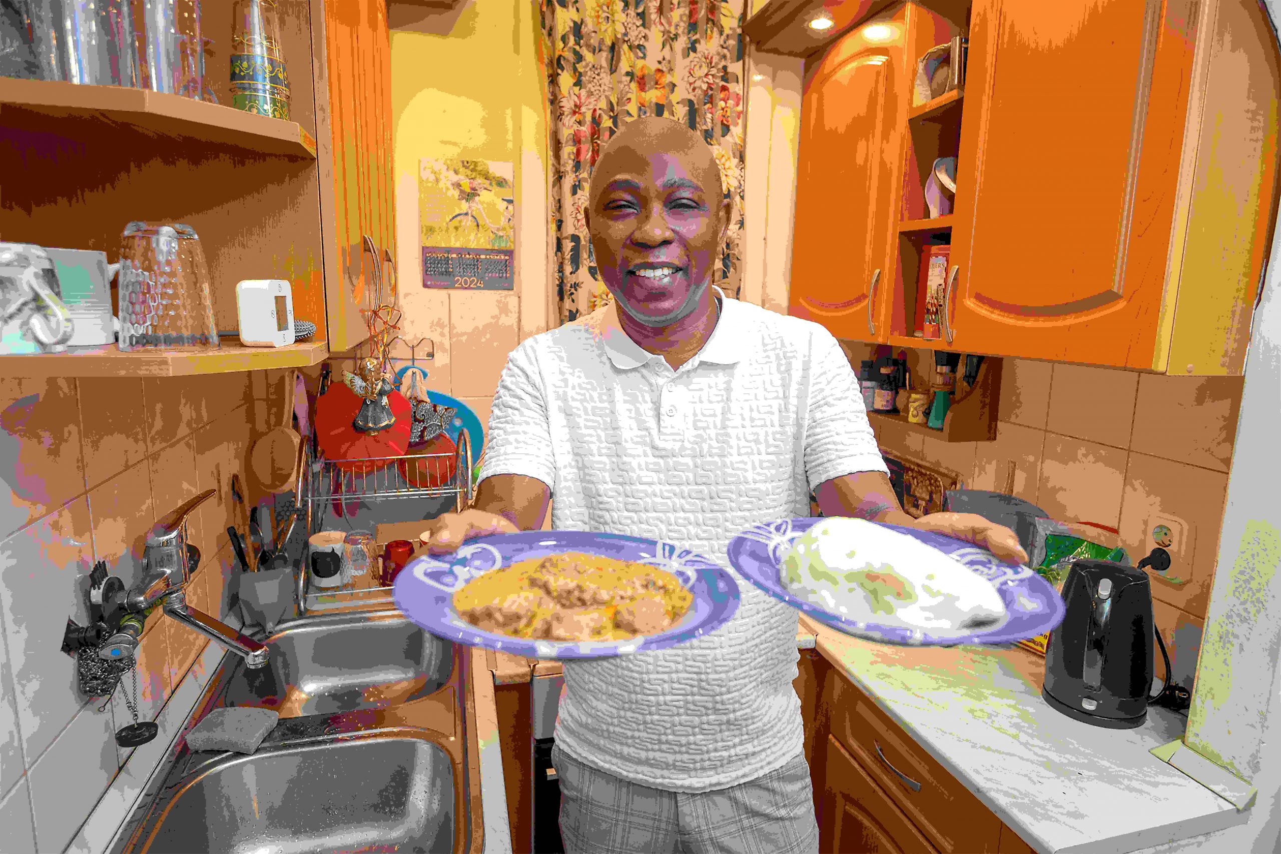 Miután elkészül a sminkje, igyekszik is vissza a konyhába, és néhány fotó kedvéért újra előveszi az egusit, a már említett finomságot. – Ez gyerekkorom kedvenc étele. Már előző nap elkészítettem nektek, de most újramelegítem, hogy így is csináljunk pár képet – térül-fordul a konyhában az énekes. – Visszadobom a tűzre, párszor átkeverem a kafanállal (fakanállal – a szerk.), és kész is!” – mutat elégedetten az ételre, majd a fufuval (tésztaszerű, gumis állagú köret – a szerk.) elkezdi tunkolni a levest. Miután másodjára is belakmározott kedvenc táplálékából, visszamasírozik a nappaliba, ahol alaposan kifaggatjuk Pákót az élete legfontosabb állomásairól.