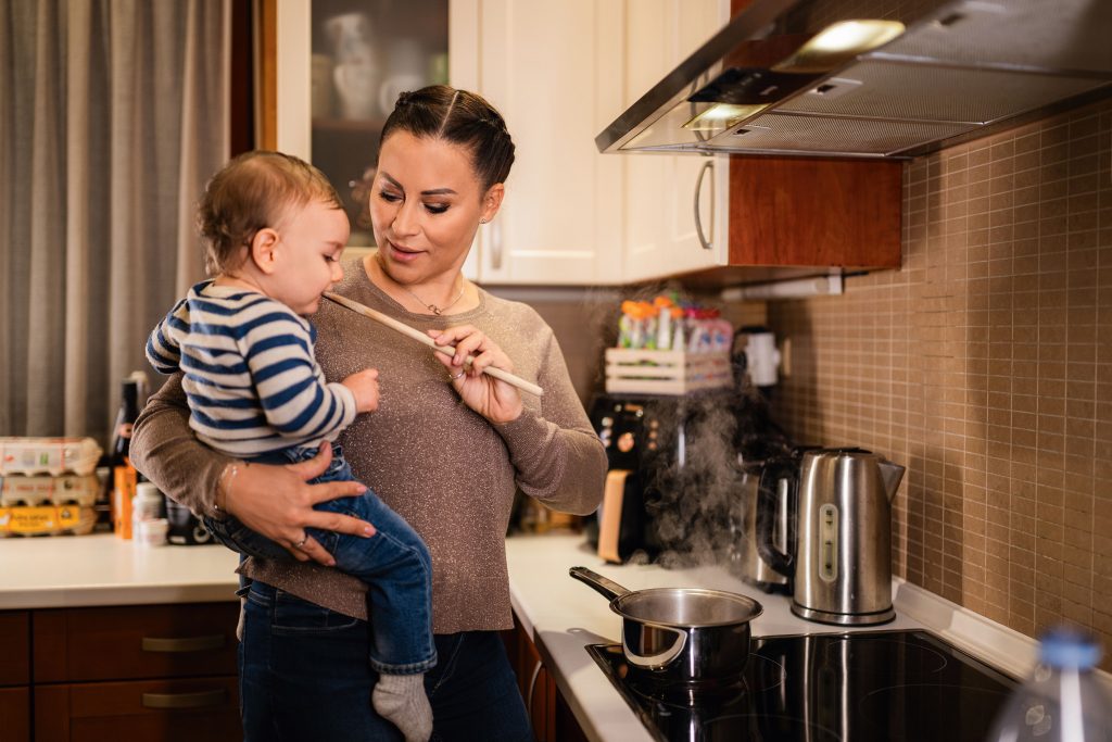 A konyha egy izgő-mozgó kisgyerek mellett veszélyes terep. Anita azt meséli, hogy amíg kisfia kisebb volt, a földön játszott, amíg ő főzött. „Elvolt a konyhaszekrény alsó fiókjaival, pakolászta az edényeket, műanyag tárolókat. Korábban legfeljebb a kutyaitatót kellett elpakolni, mert mindig kiborította – meséli mosolyogva az édesanya. – Most, hogy nagyobb, és feléri a pultot, mindent be kell tolni, nehogy magára rántsa.