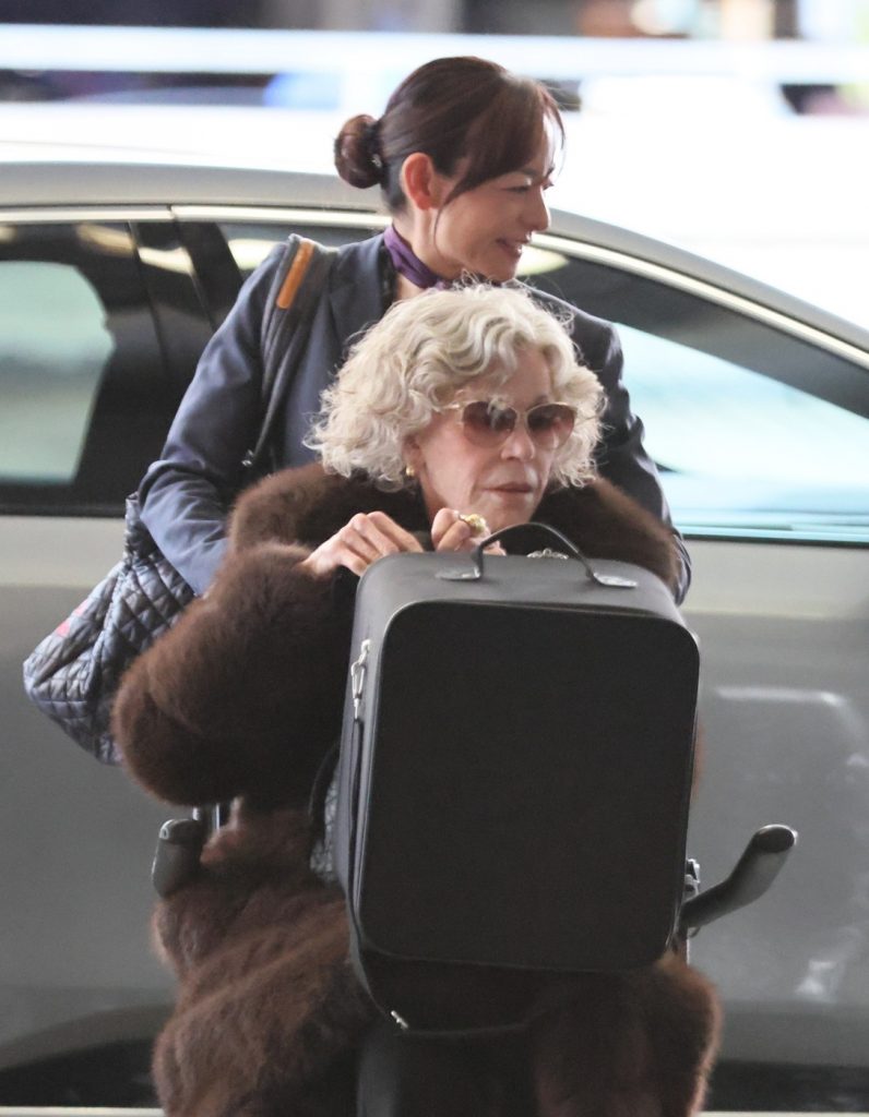 A Los Angeles-i repülőtéren bukkant fel Jane Fonda, aki szokásához híven igazán stílusosan festett elegáns prémkabátjába burkolózva, bronz árnyalatú napszemüvegében. Hiszen hiába 88 éves, a színésznő most is nagyon ad a megjelenésére. Még akkor is, ha épp kerekesszékben érkezik a járatához. A színésznőt a reptéri személyzet tolta a taxitól a terminálon át, miközben az ölében két táska pihent, a többi csomagját pedig külön kocsi vitte.