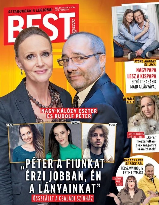 A színésznő és férje, Rudolf Péter a szülők, Flóra, Szonja és Olivér a gyermekeik. Ráadásul mind az öten ugyanazon a pályán.