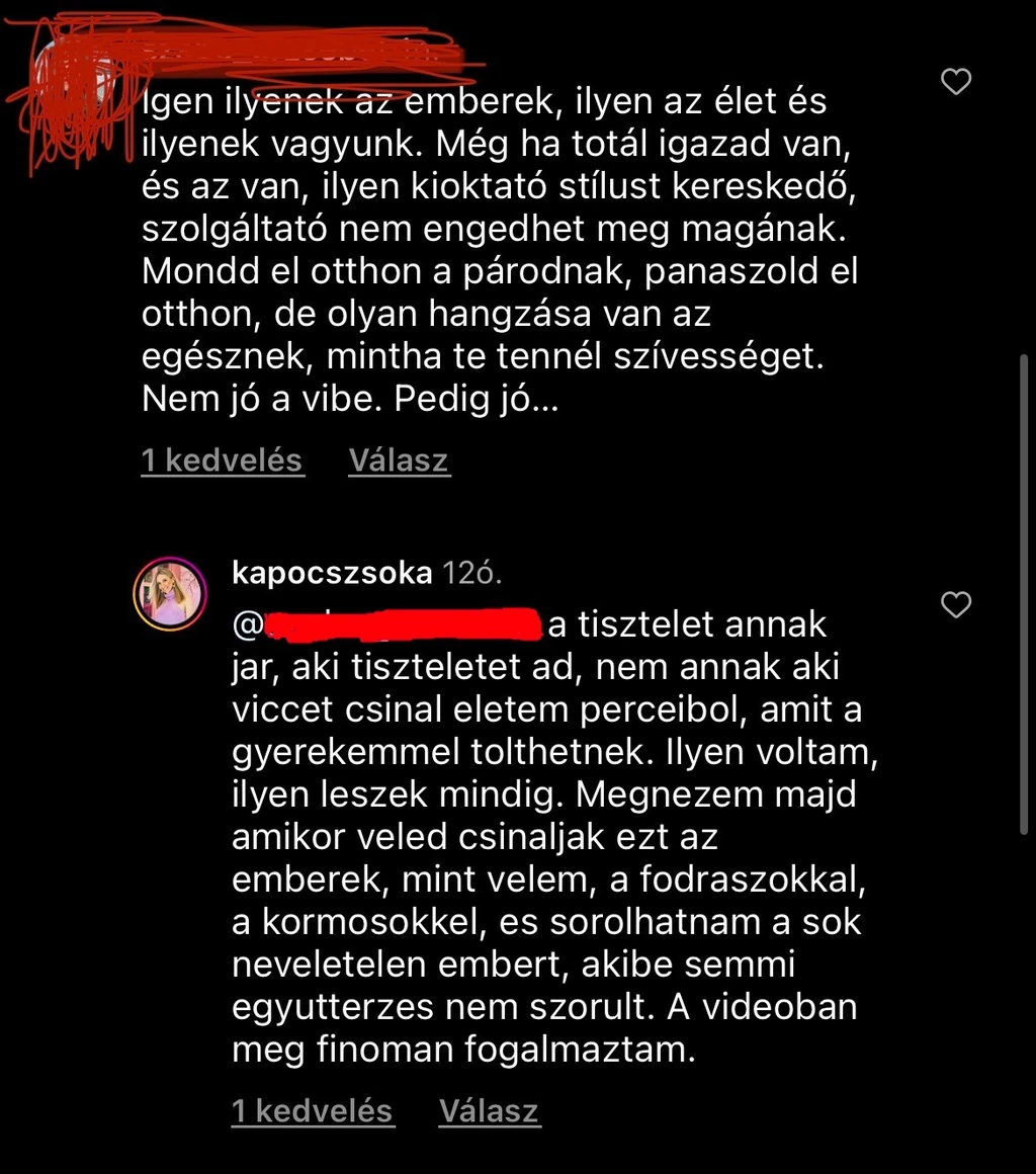 Volt, aki a videót látva megjegyezte, Zsókának igaza van, azonban a videóban tanúsított stílust nem engedheti meg magának. Erre a következő válasz érkezett: „A tisztelet annak jár, aki tiszteletet ad, nem annak, aki viccet csinál életem perceiből, amit a gyerekemmel tölthetnék. Ilyen voltam, ilyen leszek. Megnézem majd, amikor veled csinálják ezt az emberek, mint velem, a fodrászokkal, a körmösökkel, és sorolhatnám a sok neveletlen embert, akibe semmi együttérzés nem szorult. A videóban még finoman fogalmaztam” – írta Zsóka.