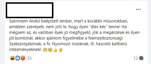 Persze van olyan tévénéző, aki Anikó mellett áll. „Anikó nagyon figyel a részletekre, ez nem azt jelenti, hogy beépített ember. Lehet, hogy tényleg jók a megérzései, vagy képes összerakni a kockákat?” – kelt a tévés védelmére egy kommentelő. A csatorna illetékesei azonban a story.hu-nak leszögezték, az alkotók semmilyen módon nem befolyásolták a játék alakulását. „Nádai Anikó senkitől se kapott segítséget a játék során” – nyilatkozta kérésünkre az RTL.