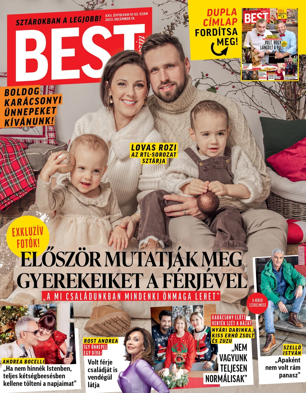 Lovas Rozi, az RTL sorozatainak és a Radnóti Színház színésznője ritkán enged bepillantást a magánéletébe, ám a BEST magazinnal ezúttal kivételt tett, és a közelgő ünnepek alkalmából címlapon szerepel férjével, Horváth János Antal rendezővel, és két gyermekükkel: Misával és Izabellával. Rozi két csemetéjéről is mesélt a lapnak. „Csodálatos figyelni, ahogy nőnek, ahogy egyre inkább összeérnek. Zizi nemrég még csak egy kis ’zöldség’ volt Misa számára, akivel nem lehetett mit kezdeni, de amióta lehet vele együtt játszani, ez megváltozott. Már az is előfordul, hogy ketten együtt frontvonalat képeznek, és összefognak velünk szemben. Például ha Zizitől kérünk valamit, amit nem akar megtenni, akkor Misa rögtön a védelmére kel – mesélte büszkén a színésznő.