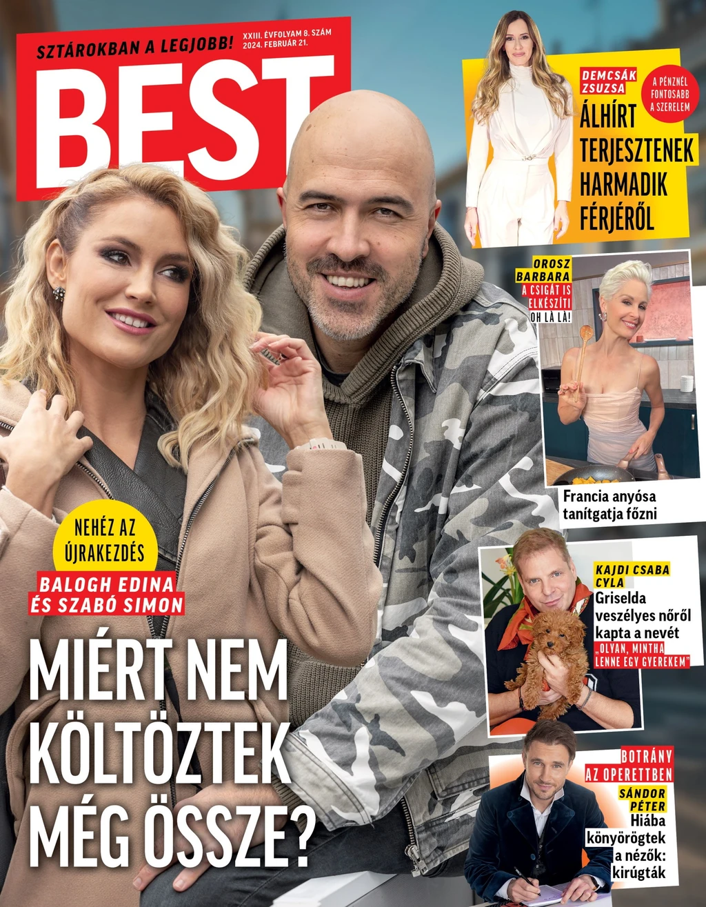 A tavalyi év egyik legnagyobb egymásra találása volt Balogh Edináé és Szabó Simoné. Mindketten egy válás után voltak, amikor a TV2-n futó Farm VIP forgatásai alatt közelebb kerültek egymáshoz. A Best megtudta, hogy noha továbbra is nagy a szerelm, megannyi sztárpárral ellentétben ők egyáltalán nem kapkodnak. Nem bútoroztak össze, és nem is tették még össze leendő mozaikcsaládjukat. „Mindketten megfontoltak, és a gyerekek miatt hatszor meggondolják minden lépésüket. Szeretik egymást, de egyelőre ott tartanak, hogy igyekeznek minél több időt együtt tölteni és megismerni a másikat. Sokat randevúznak. Szeretnek moziba és színházba járni, és pár hete együtt voltak Bécsben is” – árulta el egy bennfentes, aki szerint a szerelem ellenére Edinának és Simonnak kell még egy kis idő, hogy egy ekkora csalódás után, amit a zátonyra futott házasság jelent számukra, teljesen átadják magukat a boldogságnak.