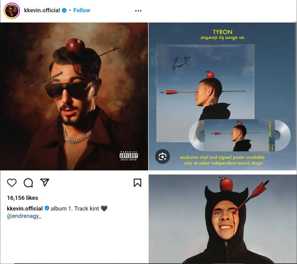 A fiatal zenész nagy örömmel osztotta meg az Instagram-oldalán, hogy megjelent a legújabb lemeze, aminek a borítóját is büszkén mutatta meg követőinek. Noha a látványos fotó és az album első, Patkány címre keresztelt dala sokak tetszését elnyerte, egy kínos párhuzam is szemet szúrt KKevin követőinek: az alkotó finoman szólva erőteljesen inspirálódott egy külföldi sztár munkájából, az album dizájnja tagadhatatlanul hasonlít a brit rapper, Slowthai négy éve megjelent Tyron című lemezére.