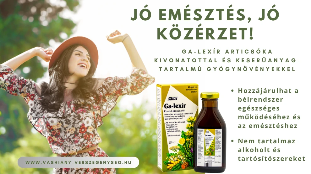 A Salus Haus gyógynövénygyár termékei közül a Ga-lexír étrend-kiegészítő articsókát és egyéb keserűanyag-tartalmú gyógynövényeket tartalmaz, melyek hozzájárulhatnak a bélrendszer egészséges működéséhez, az emésztéshez.