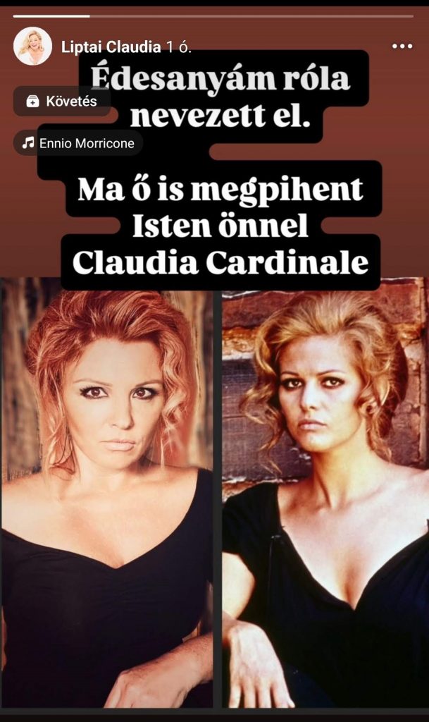 Claudia Cardinale után nevezte el édesanyja Liptai Claudiát. A tévés is gyászolja a 87 éves korában elhunyt színésznőt.