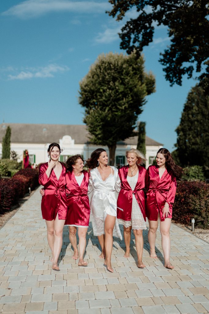 Készülődés közben jobbról az édesanyjával, balról a jövendőbeli anyósával, két szélen pedig a sógornőivel