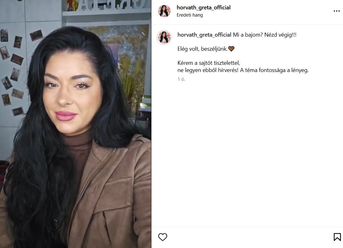 „Szürreálisabbnál szürreálisabb dolgokat hallottam vissza arról, hogy Horváth Grétának mi baja. És úgy döntöttem, hogy akkor itt most megállj parancsolok, és beszéljünk róla. Le fogom tiltani a hozzászólásokat is. Azért, mert nem kell a lájk, meg a jobbulást kívánunk üzenet sem. A betegségre szeretném felhívni a figyelmet, és arra, hogy rengeteg minden változott meg bennem az elmúlt nyolc hétben”